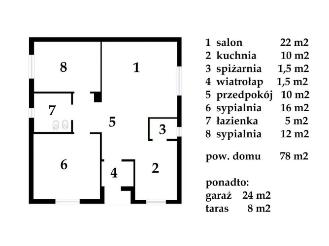 Pow.78m2 na którą składają się : przestronny salon z jadalnią, półotwarta kuchnia, dwie sypialnie oraz łazienka. Salon jasny, przestronny z klimatycznym kominkiem opalanym drewnem i wyjściem na taras.