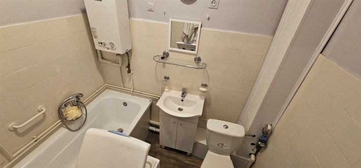 Ogrzewanie centralne miejskie, ciepła woda z piecyka gazowego.